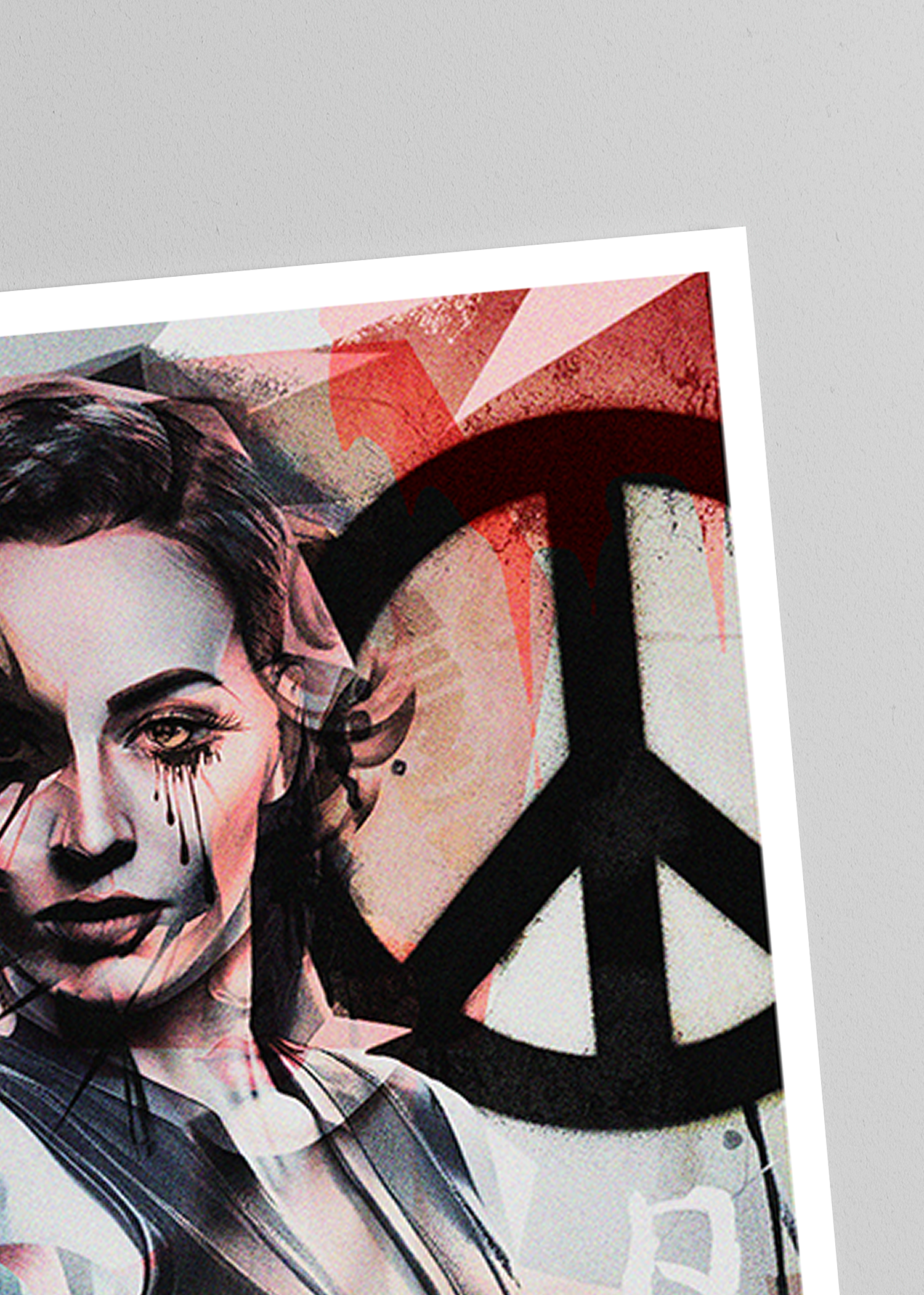 This artwork powerfully embodies the tension and harmony between conflict and peace, strength and vulnerability and how power and peace are connected, with each relying on the other to exist. Highlighting that struggle and serenity are inseparable parts of life’s balance. Without one, the other loses its meaning.